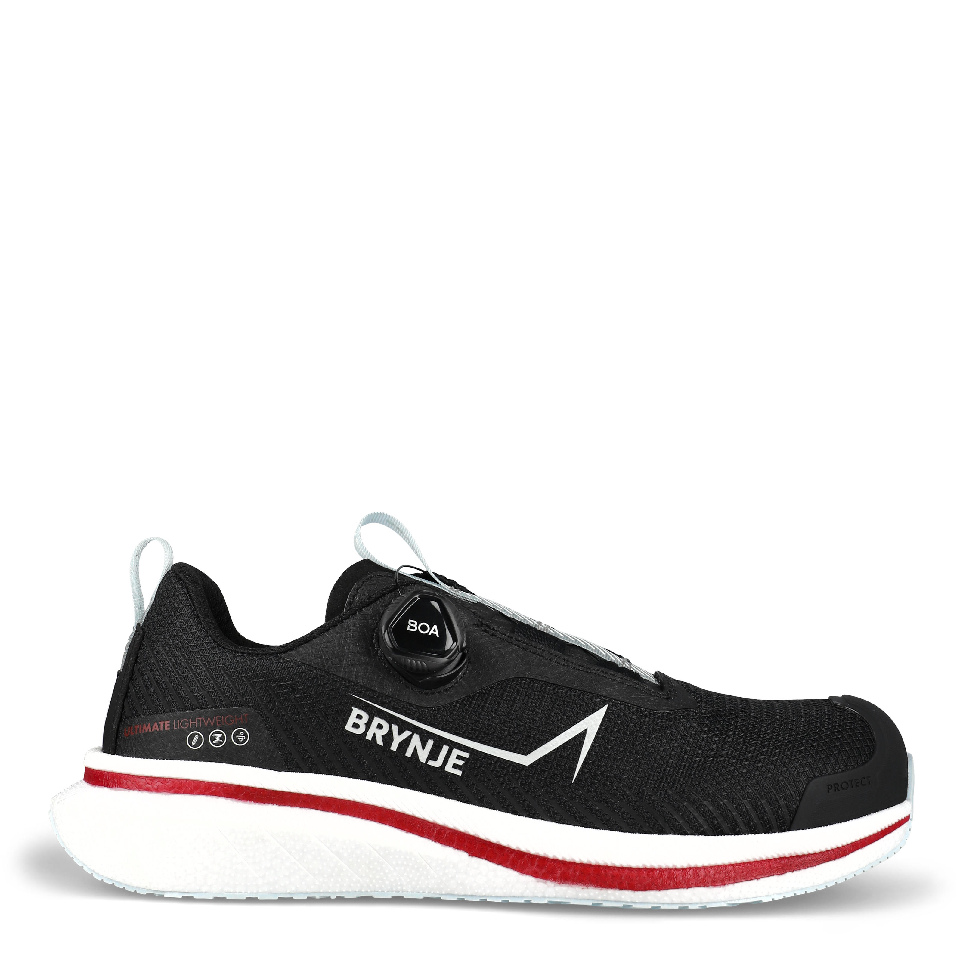 - Ultra let sikkerhedssko; Åndbar tekstiloverdel og inderfoér for behageligt klima i skoen; Praktisk BOA® Fit System for nem justering; Skridhæmmende ydersål af TPU; Midtsål i NRGize Foam og blød indlægssål for overlegen energireturnering; Letvægts alu-tåværn og fibersømværn .